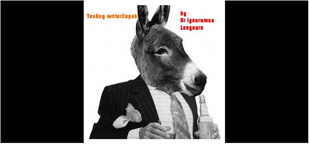 Regarding the matter of cover page display on a widescreen PC monitor, I tried to produce an epub by using the writer2epub extension available for LibreOffice and Apache OpenOffice -- just to see what happens to the cover page when displayed on a widescreen PC monitor. The writer2epub extension did not produce an epub containing the pictures I inserted into the OpenOffice source document. But writer2epub did use the first picture inserted into the OpenOffice source document to create a cover page. Leaving the questions about the absence of pictures in the writer2epub-produced epub aside, the cover page created by writer2epub displays with a black background on a widescreen PC monitor. This is of course ideal. (See the attachment.) If this writer2epub-created epub is imported into Sigil, the cover page html can be left as is and your Sigil-produced cover will have the same black background. Another interesting thing is that writer2epub does reproduce footnotes created in the OpenOffice source document. However, they are reproduced as "endnotes". When you import the writer2epub-produced epub into Sigil, these "endnotes" are contained in a separate html, and they are displayed as "endnotes" in the Sigil-reproduced epub. I don't of course suggest using OpenOffice and writer2epub as in-between programs: it would be a bit crazy to work like that. I would much rather know how to produce that black background (or a background with another colour) using Sigil itself. HOW DO I DO THAT? PS To position the cover in the centre of the widescreen PC monitor display, you must simply centre the picture inside Sigil. In Sigil, do Ctrl-E. Last edited by ecbritz; 04-13-2013 at 09:17 PM. |