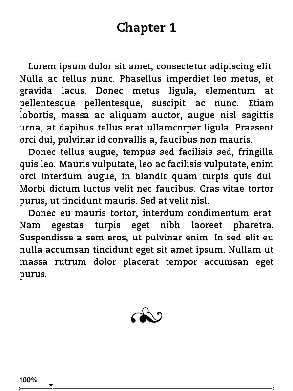 Below you can see an epub with a SVG image used as a fleuron. Instead of embedding a full font file; I saved some glyphs as SVG images. Why do I use a SVG image instead of a .png image? A .png image of the same fleuron used in this epub is about the half in size regarding the SVG image but when you change the size of the book font, the quality of the svg image is perfect. One more word: the method I have employed in this epub doesn't work in ADE (in my Kindle works great). ADE doesn't support the pseudo-class "after"; so, if you want to use the svg image in ADE you should inserted by employing the <img> tag: