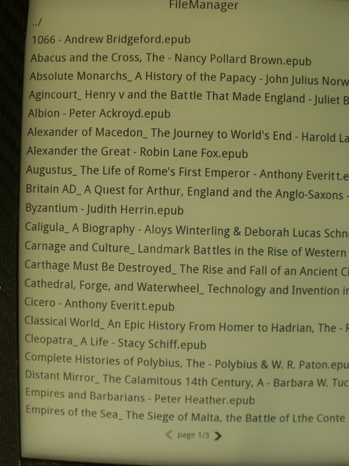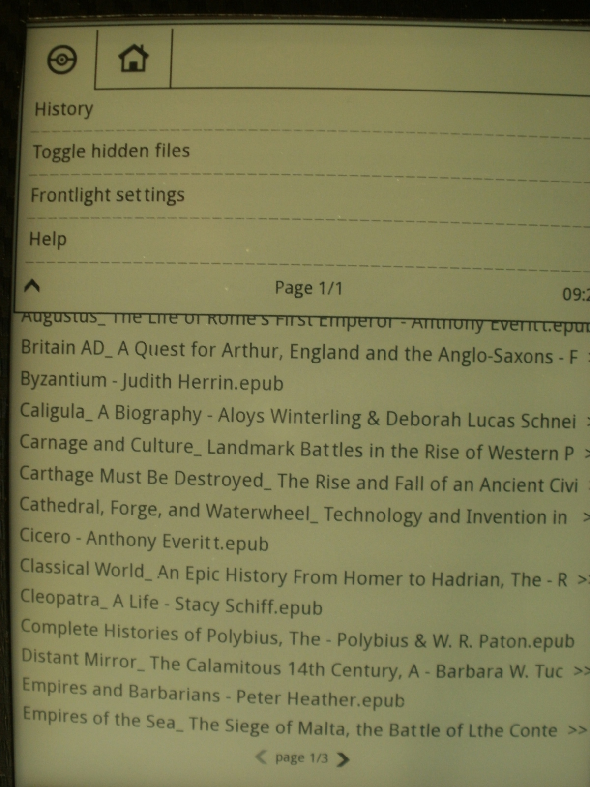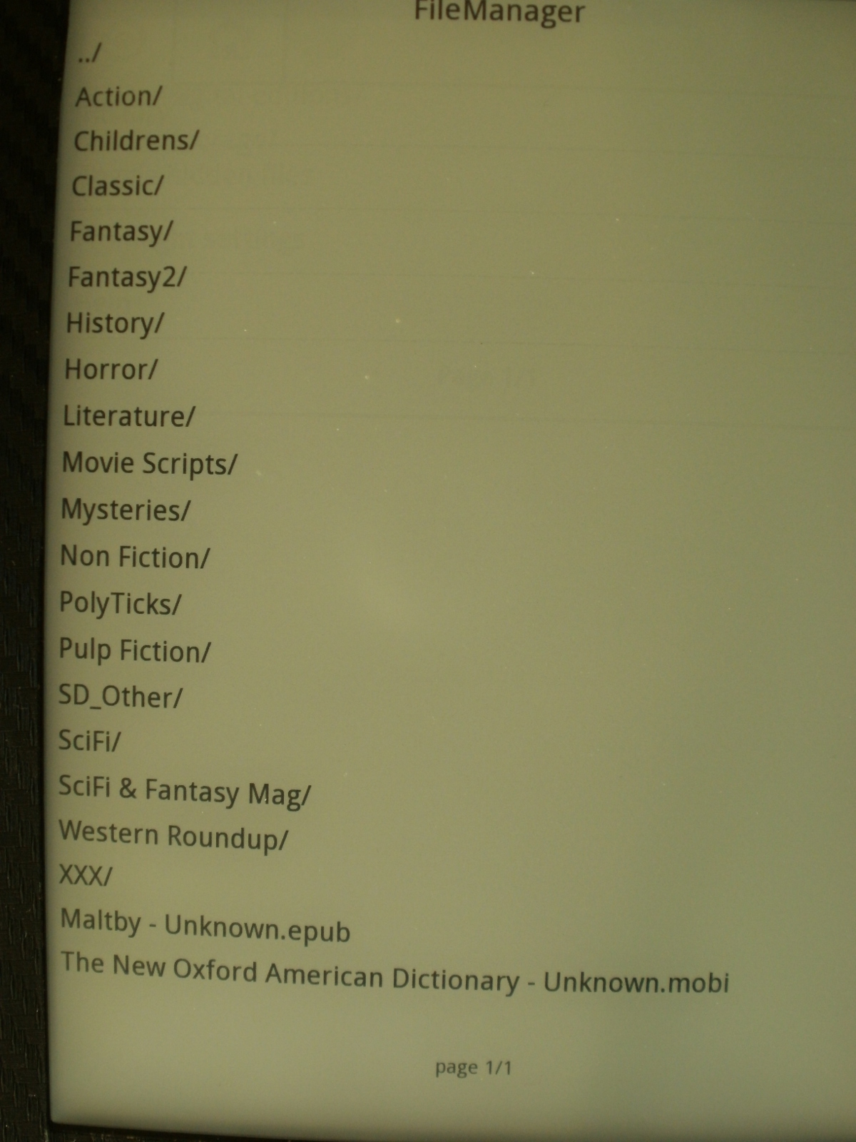 Some pictures of Koreader's File Manager (I got the lighting wrong, the screen has the Pearl white background in real life.)