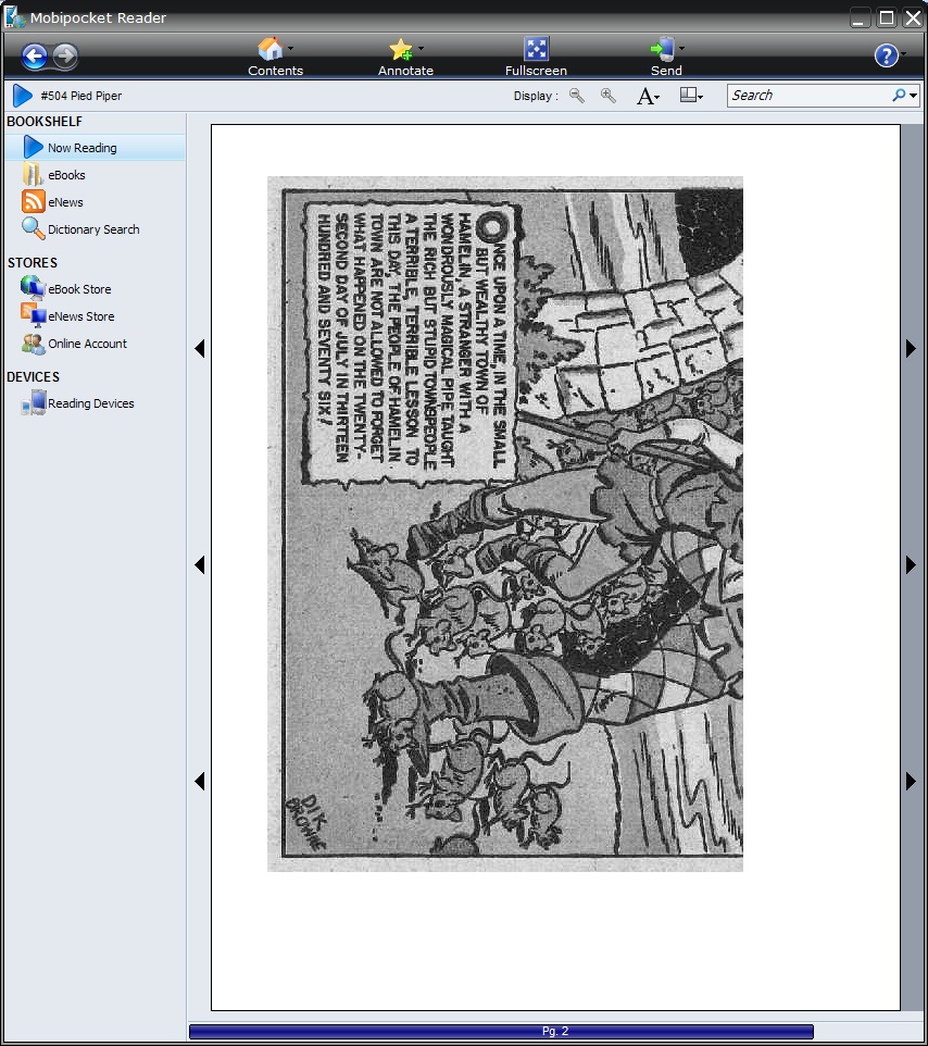Those who want to try a new Comic (CBZ/CBR) to LRF/PRC/HTML/IMP converter may want to try PDFRead 1.8.1 which was just released in the Content forum. Input support for .CBZ/.CBR was recently added in addition to pdf/djvu/tiff/imglist. Output Profiles have been provided for the Sony PRS-500 and PRS-505/Kindle/Cybook Gen 3/iLiad/Generic as well as the EBW1150/REB1200.