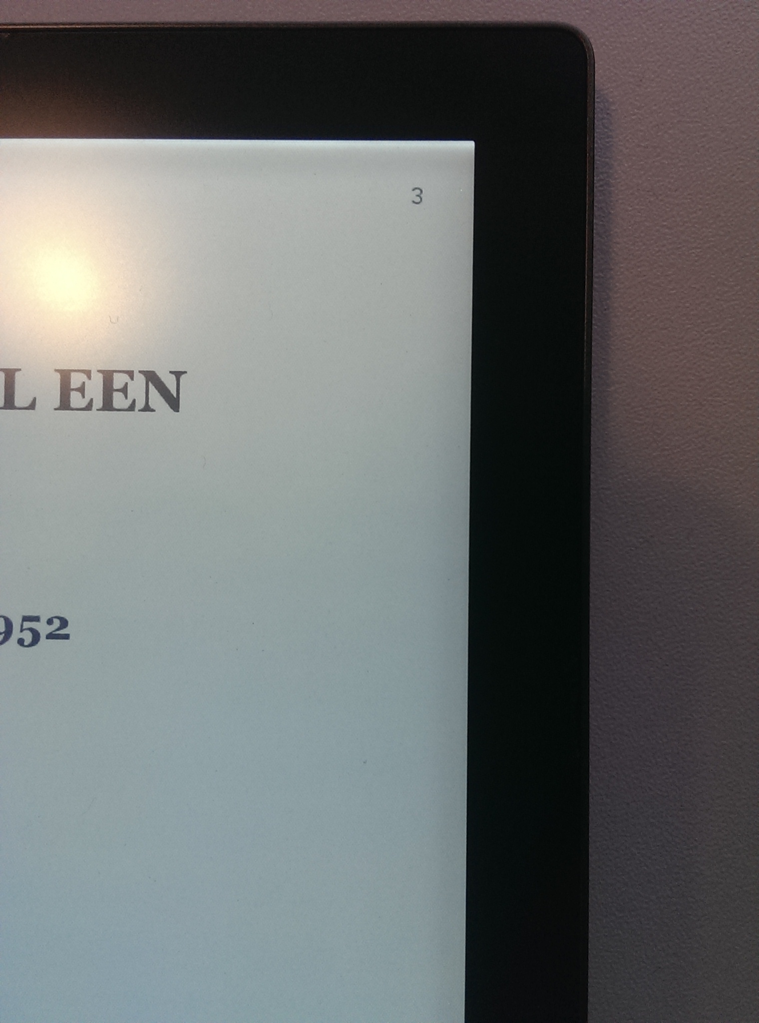 Added to that, when turning on the light, I can see one bright spot in the top right corner (Picture two, on the right of pagenumber 3). I am now contemplating on returning this one as well. OK, one small bright spot in an area where there is no reading to be done is not so bad, I think. And the scratch is at the edge of the Kobo and probably won't be visible when I put my cover around it. But from a €159 device, I would expect it to not have any issues at all. And I have already ordered a €24 cover, so that will become useless as well. I'm on a fence here... |