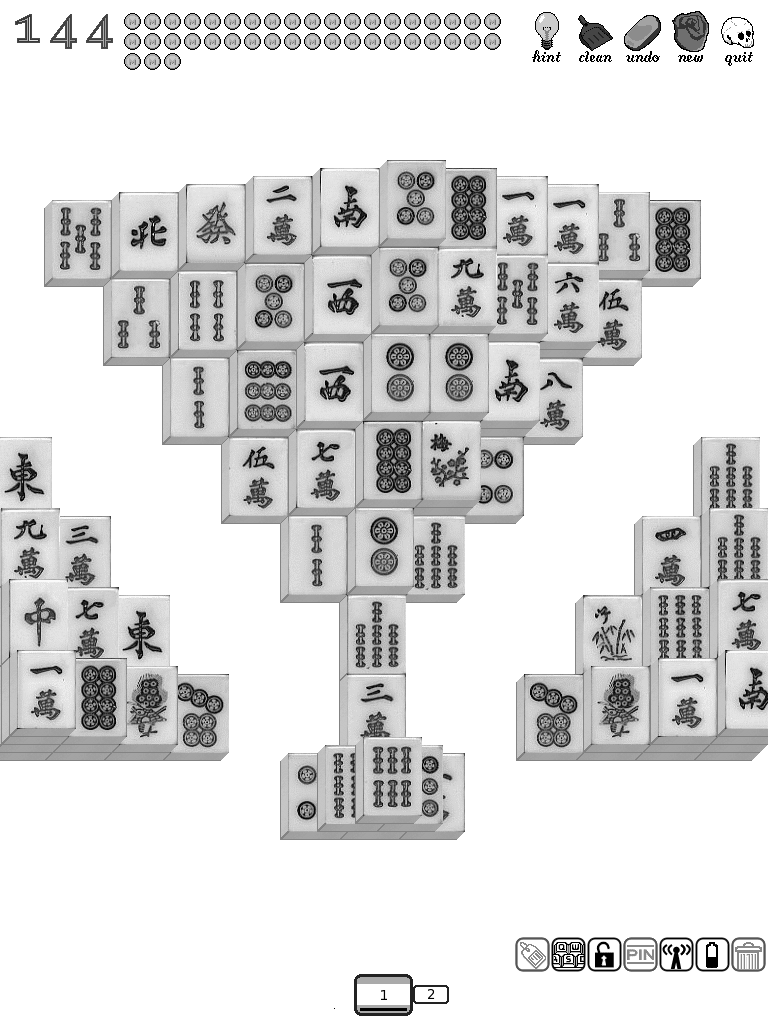 Are there are any Mahjongg fans out there? If yes, you will like xmahjongg. Xmahjongg does work like the other millions of Mahjongg clones. 24 layouts are available. 3 of them are attached below. Known bugs: # Refreshing of screen isn’t perfect. Program relies completely on patched libX11. Please use the "page switcher" to start a full refresh of screen. This should be fixed in version 0.2 soon. [EDIT] New binary with fix is out.# Some of the horizontal layouts are cropped because they don’t fit on screen. -> maybe choosing a smaller tileset for these Xmahjongg's homepage is here with manual page. 8 tilesets are included. If you want more you can download prepared tilesets on the homepage of Mohave Mahjongg GUI. 31 tilesets [2,75 MB] The attached pdf file is also included in zip file. Last edited by yokos; 04-02-2008 at 11:02 AM. Reason: new binary; with != which |