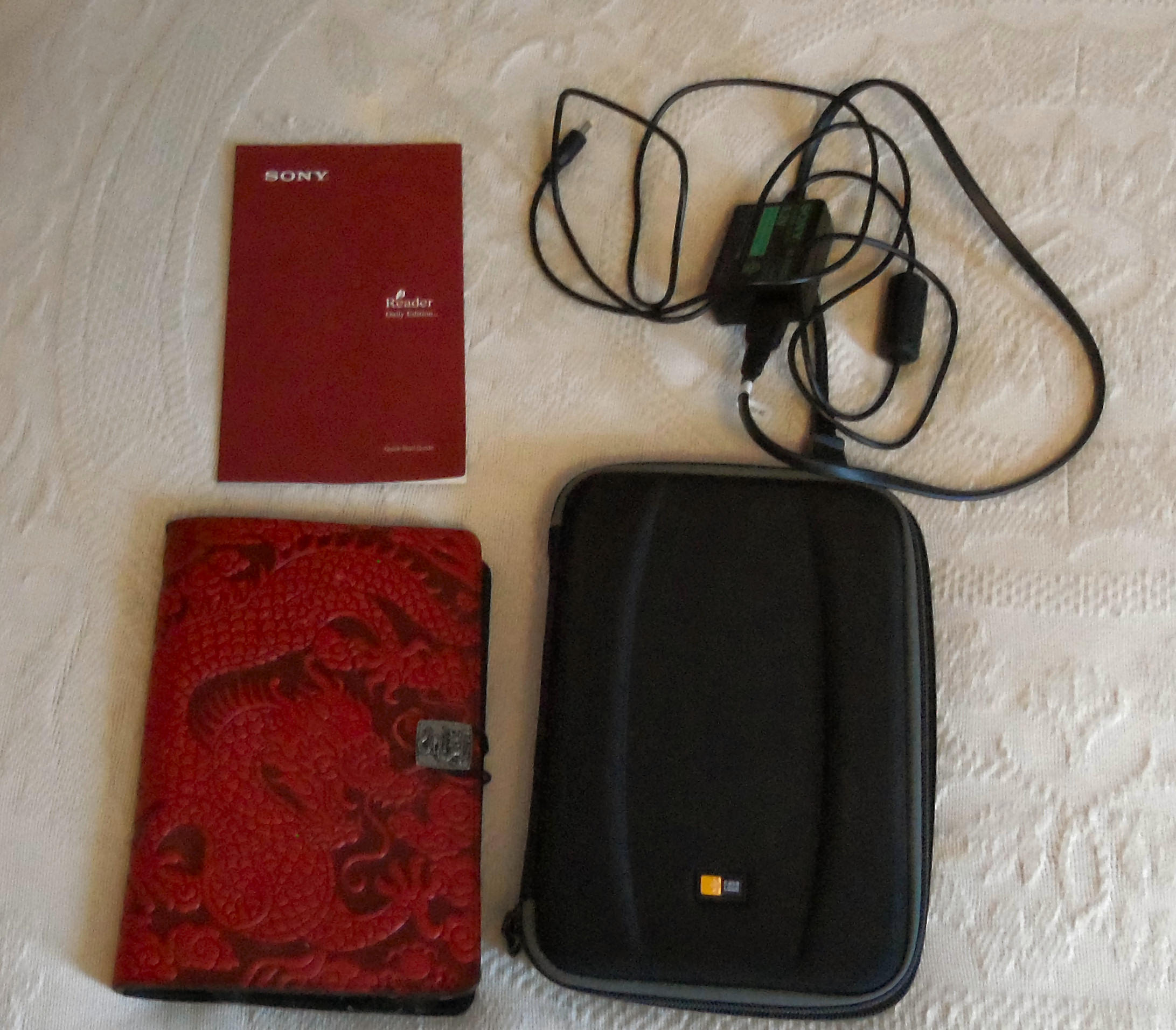 Reader is in very good condition except for a couple of small (about one cm long) thin scratches on screen near bottom. Well include the original hard case and the charger cable. I have misplaced the stylus that came with the unit. Also includes the Oberon Designs leather Nook cover (fits Sony perfectly) Cloud Dragon design in red color. See two photos attached. I'm thinking $50 for it all plus $10 for shipping within the United States. Or contact me with an offer. Last edited by Hamlet53; 02-15-2014 at 01:59 PM. |