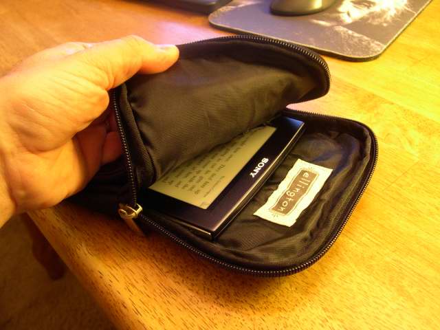 I've been looking for a good case for months and finally found one I liked. It's an Ellington Airport Express Travel Bag which I bought from Amazon for $35.00. It has a large zippered pouch that is just a bit wider than the Reader and about two inches taller and just thick enough that I can also slip in a good pad of paper for notes. It has a second smaller zippered pouch that I put my mp3 player, earbuds, and spare battery in, although it's intended to carry money, credit cards, etc. There are several other places to slip things into including a hidden area with a velcro closure. I slip a pencil into one of the pouches. It's light, water resistant, and comes with a loop for carrying on your belt (my preferred way) and also a removable strap so you can carry it like a map case or purse. Now I really do look like a nerd with a cellphone on my belt on one side and this thing on the other. Supposedly, it's available in several colors but I ordered one and they said they only had black. I'm not sure what it's made of - a composite with a durable cloth-like outer layer and a nylon or something inner layer. I'm pretty happy with it.