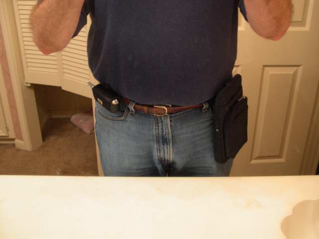 I might have to consider this down the line. I am currently using an old German (I believe) Army map case that I love. It has just the right amounts and sizes of pockets to hold my Reader in its DVD case , my iPod Classic, Palm Tungsten E, earbuds, sunglasses in their case, my cell phone, and a pen, pencil and stylus set I have. Sadly, the leather is cracking and one of the straps has started coming off the back. I have looked all over the internet and cannot find another one like it. I also wear my bag like you have yours but I use the strap it came with so if I need to take it off, I can do it quickly.