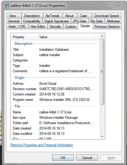 Here's the installer details that I downloaded and installed last week from official calibre site - its what created the .exe file in my prior post. I just downloaded a fresh copy, exactly the same