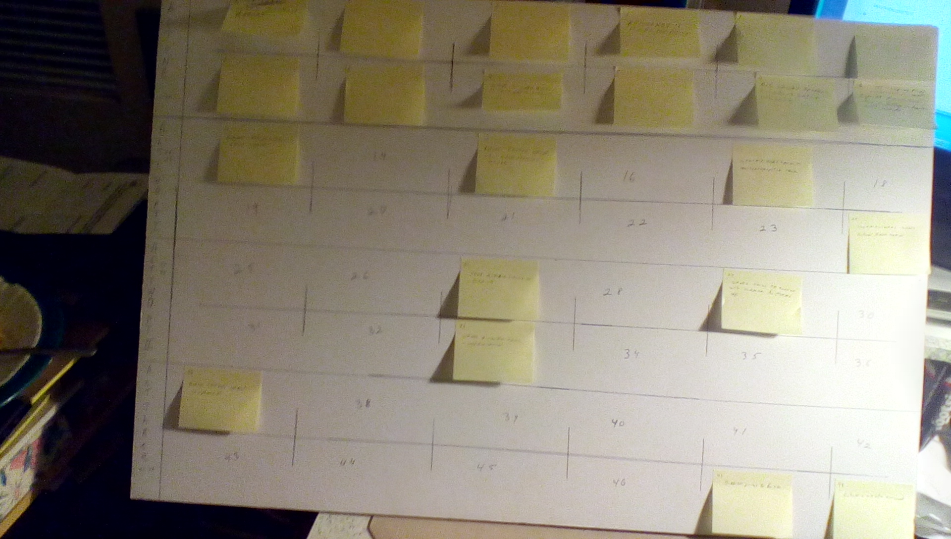 I'm working up the order of events based on a novel idea I had the other week. Using a foam board and post it notes to organize it is one thing that I'm doing.