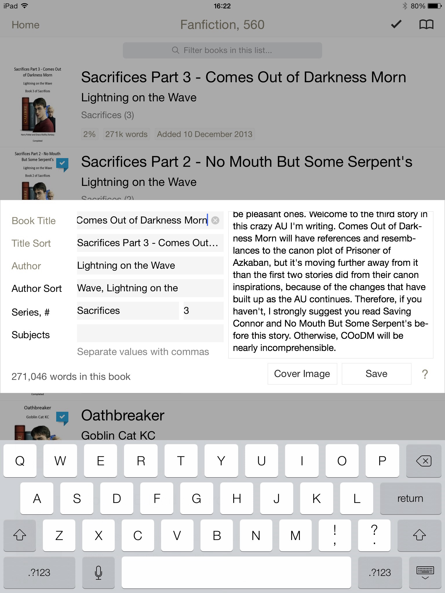 The screenshots show the relevant blog post, and the metadata tab. It seems I can only attach one image using my iPad, so I will add another post with the second screenshot. |