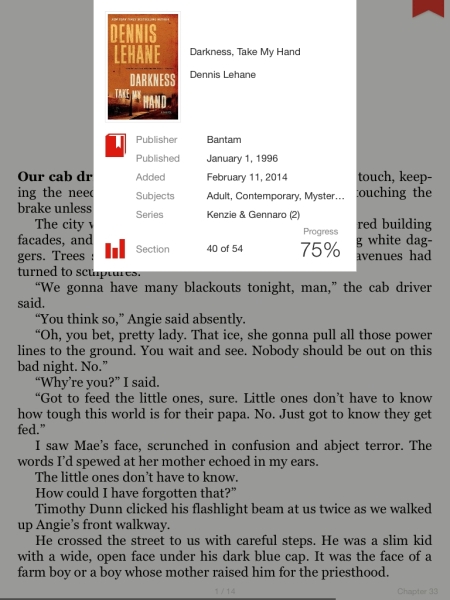 A click on the top of any page yields a wealth of information ... including the percentage of the book read. |