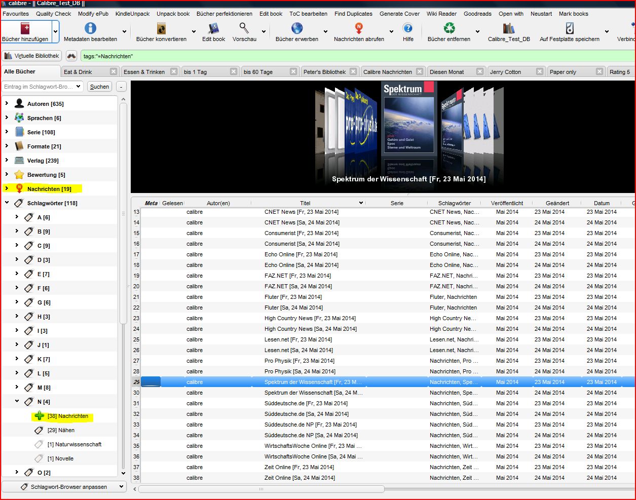 The netries under news are one per publication. So if you have n issues of Spiegel in your library there will be only one entry for Spiegel under news.