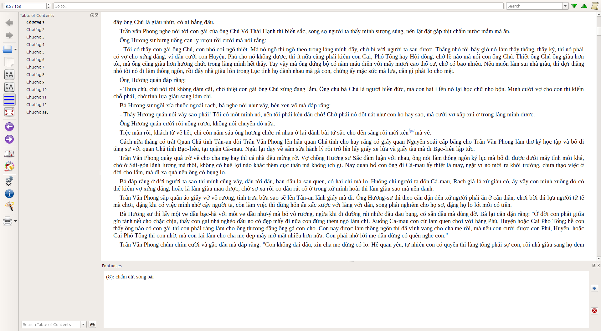 The EPUB from nqk doesn't work for me either, I get taken to end of chapter when I click ref number, e.g. 8 or 9. I see no footnotes panel. And the viewer is not 'remembering' the window size, but it is 'remembering' text/background colour changes It's hasn't worked in the installed version on my books, but I've been assuming the links were badly formed. I've not followed it up is because the release notes said 'popups' and I hate popups - your screendhot shows a dockable (I think) panel which is exactly what I prefer BR Last edited by BetterRed; 11-12-2014 at 03:50 PM. Reason: misreported window sizing issue struck out (it's in pref->misc) |