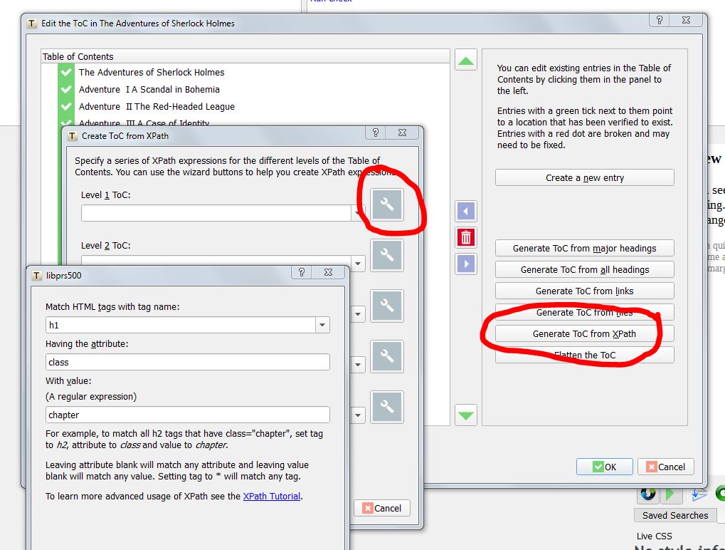 XPath instructions start here: http://manual.calibre-ebook.com/conv...le-of-contents and link to the XPath tutorial. For a more general and in depth explanation of the power of regexes, my favorite site remains this one: http://www.regular-expressions.info/ |