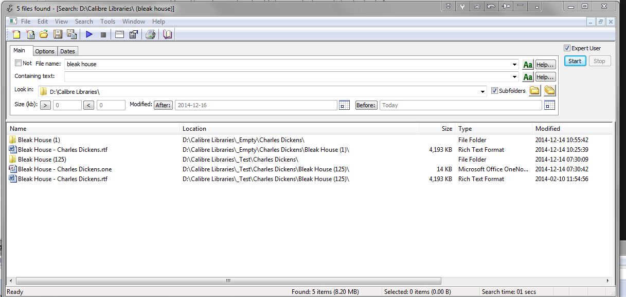 @BetterRed, it's easier. I only want to know if a book exists in any library according to the way calibre stores them, I don't need to search inside of opf files or to show all the libraries where it is. So, Explorer is find for it. And thank you, I'm going to search for the file explorers you mention. Last edited by Terisa de morgan; 12-22-2014 at 04:31 AM. Reason: Typos |