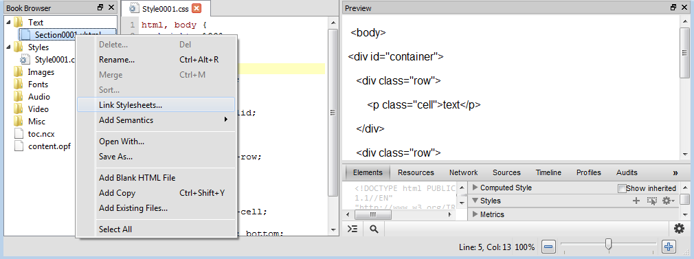 Thanks a lot for your help, however it doesn't seem to work. The raw code appears in the preview window. I even found an option called Link Stylesheets... and that didn't fix it...