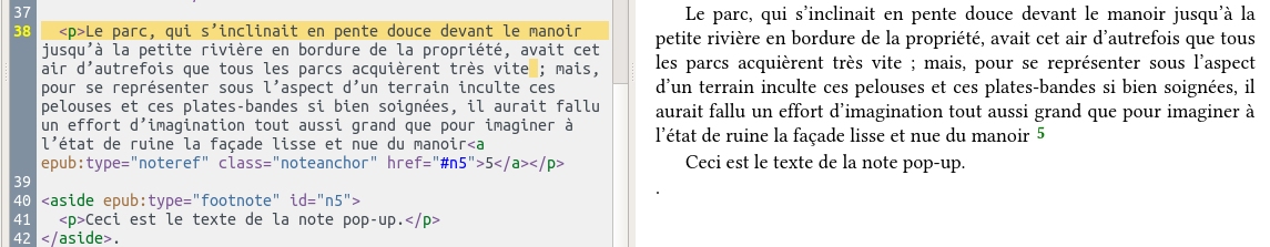 Pop-up notes are one of the advantages of the new EPUB3 format, and so I made some tries with them. In the joint screenshots you'll find - a view of a fragment of the hmtl5 file, taken from the Calibre editor - the EPUBcheck comment on it, with an error I do not understand. Does somebody understand how to suppress this error? |