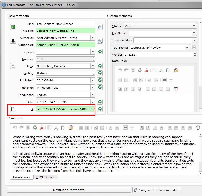 The manual mentions there is a place for the ISBN within the Metadata page, but I don't see where that is, anyone know? Thanks.