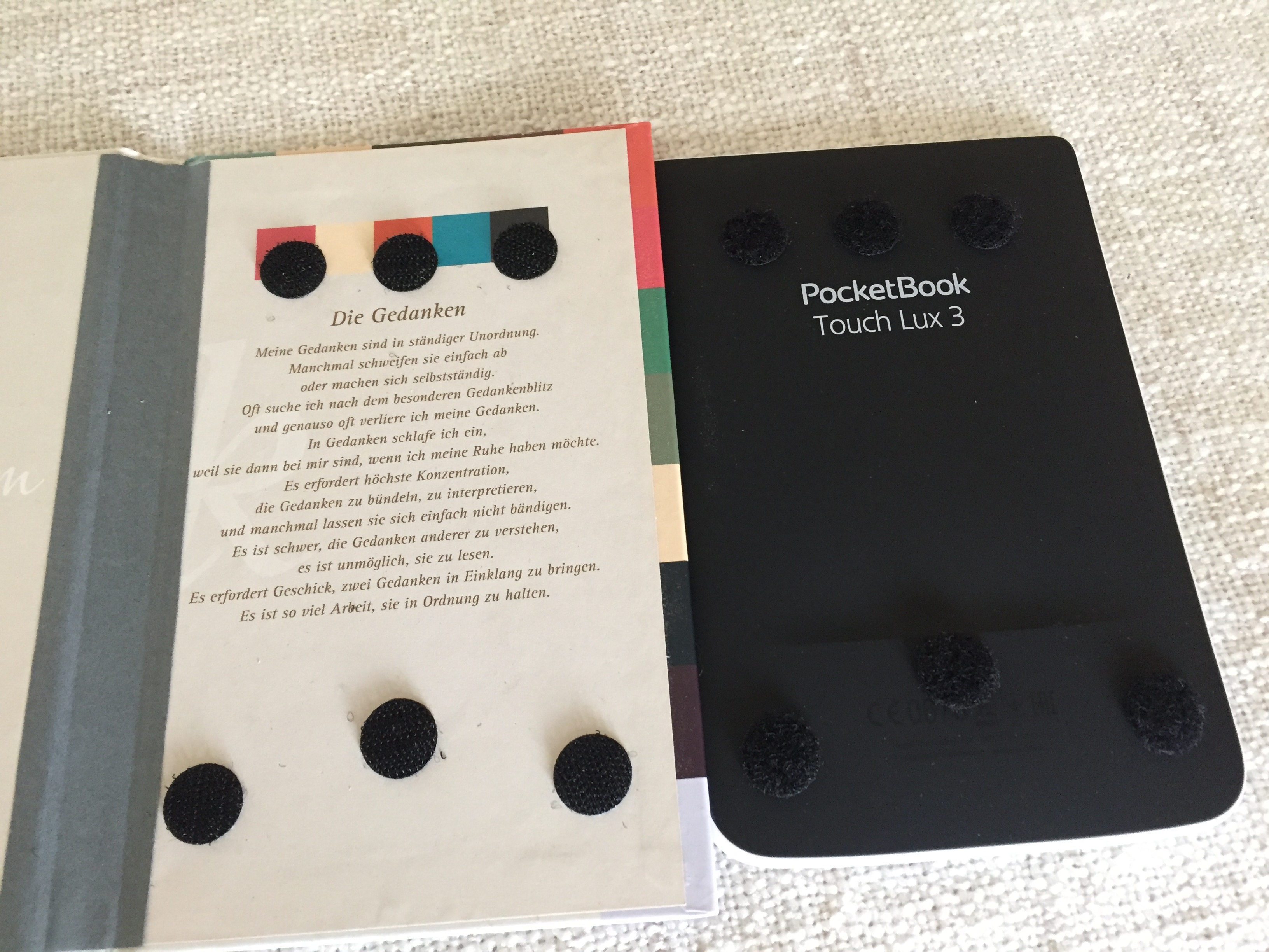 - The Book is held by in place by velcro (it is Super Strong, so the PocketBook stays in place)