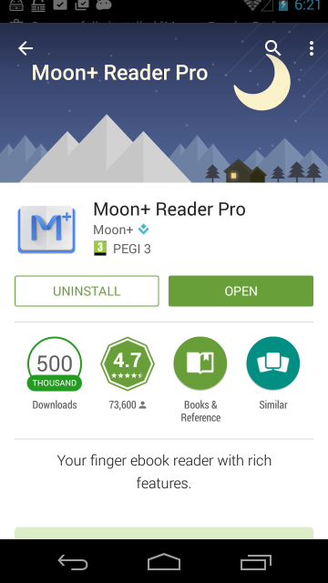 Great? I tried downloading Moon + reader pro and was charged through google play but the software did not show up on my tablet. What now?