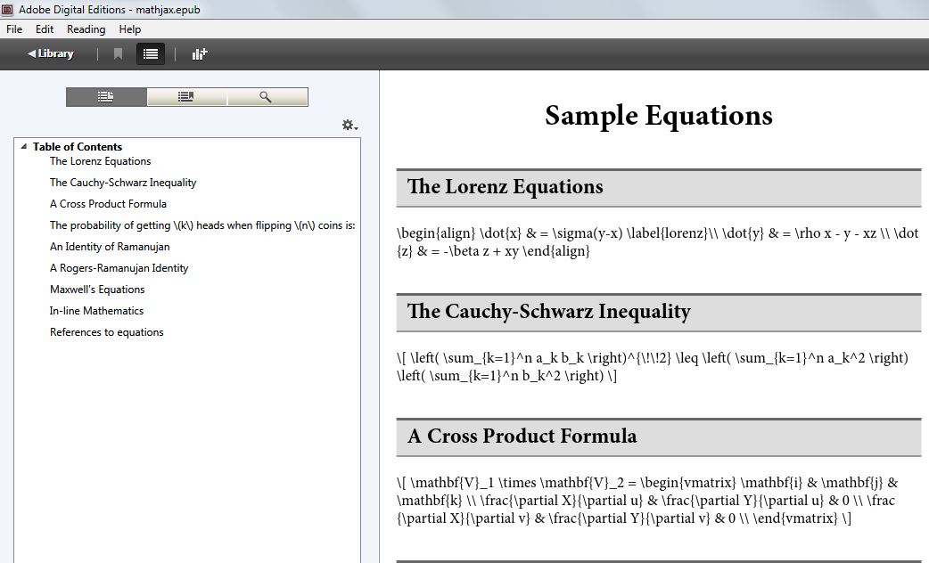 Just experimenting, but the mathjax.epub looks fine in calibre's viewer, but not in ADE (and probably others)