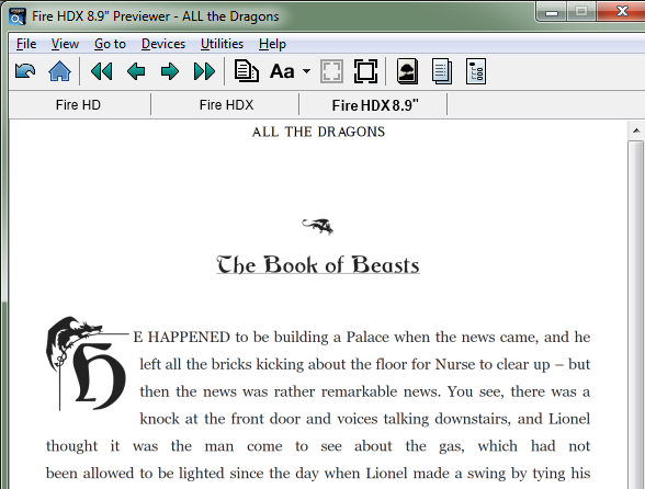 When I view the resulting azw3 file in the Kindle Previewer, the drop-caps look fine. But the decoration glyphs are all displaying very very small. In contrast, when I use Kindlegen to convert, all the glyphs are correctly displayed. When converting, I have settings as follows: Look and Feel: everything is Unchecked. Heuristic is disabled. Page Setup is set to Default Input, Kindle Fire output. (Kindle Voyage gives same result) Table of Contents: none Search and Replace: none AZW3 Output: Do not add TOC is checked, all others Not Checked. I click the button to Show Job Details, but no report is displayed. I tried mapping one of the glyphs to a regular "Latin" character (asterisk), but that made no difference. I tried several different settings in the epub CSS and html (different font sizes, margin-settings, using paragraphs instead of divs, and more). Nothing that I have tried makes any difference. I am at a loss how to fix this. ![]() Is this possibly a calibre bug? Help, anybody? Last edited by GrannyGrump; 08-25-2015 at 07:46 AM. Reason: add calibre version |