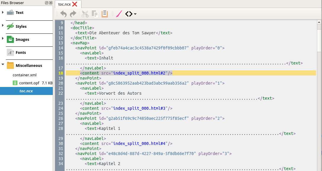![]() Die Abenteuer von Tom Sawyer (scanned book) I got 114 of these warnings, not to be corrected automatically. WARNING: Link points to a location not present in the target file It's all about the #number expressions that are to be removed. So I ask you for a regex to do the job, please! But even for a few words what it is all about. Are there other ways to resolve the warnings? Last edited by chaot; 11-05-2015 at 03:22 PM. |