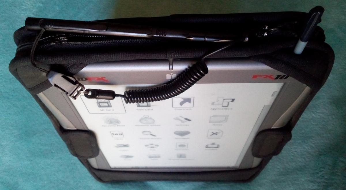 I wasn't very happy with iRex's original covers for the DR1000 so, being the DIY enthusiast I am, I thought I'd better make my own one the way these things are meant to be. Here's a few pics of the final prototype I've been using for months now, and a quick go at its raison d'être: The 'Executive' cover is OK, but too big for an already bulky reader. The flip cover is adequately sturdy and protective as well, but it's 1cm too short if you really fit a professional stylus at the top, plus it will let everything in from all sides... Mine is made of neoprene so it protects the reader from light shocks as well and fits it snugly (no 'need' to take the reader out any more to make it 'lighter' nor 'handier'), and the double zip spares the reader from light rain and casual splashes while allowing quick access to the charge port and the SD card. For additional protection, thicker neoprene can be used, or a hard cardboard / light wood / foam / whatever base can be fitted beneath the reader, equalling or surpassing the original covers. My cover features two 'flop ears' (left one on and slightly up, right one 'off' in the photos) and an horizontal elastic band that allow the reader being held naturally and making annotations on it without constantly triggering the sensors, while at the same time not being too obtrusive if you actually need to use them. As you can see in the photos, the flop ears can be put behind the reader if you need completely free access to the sensors on the sides. It's a quicker replacement for locking them, it is selective too, and it can be easily put aside if you don't like it. I decided to make my cover the flip type -- this way the front cover can* double as a stand when put behind the reader, and putting the pen pocket on the upper side it can be used equally comfortably by lefties and righties. *The exceptionally bad photo showing the professional stylus completely inside its pocket reveals a red line -- that's the front cover inner pocket (velcroed). I fit a light sturdy tablet (an electronic pen support tablet, actually) inside to protect the screen from stronger shocks when carrying the reader around. This lets the front cover act as a stand. I also have a cheap foldable stand (photo #6) just in case I need to use the reader on a stand and the pen tablet at the same time. Everything fits inside the front cover pocket alongside the charging cable and as many paper sheets as you may need -- and the whole package is just slightly thicker than the reader in iRex's original red-and-black cover (seen behind in the pictures to compare sizes). The final model will feature an exterior zip pocket on the front cover, so accessories and documents can be taken out without opening the cover and exposing the reader without need. That model will also feature double seams and fancy sewing finish everywhere - this is just a prototype, so don't be too harsh ; ) The SolidFX guys sell a similar solution for the DR800 (photo #7), and you can spot my brand new DR800 lying in one while charging at my DR1000's feet in photos #2 and #3. Materials needed: neoprene, zips (I started buying a couple of those cheap generic 'laptop neoprene sleeve / zip bags' you'll find everywhere), elastic bands, needle and thread, and patience. Or you can tempt me with a good offer ; ) Last edited by MrWarper; 01-12-2020 at 08:48 AM. Reason: Wording / spelling |