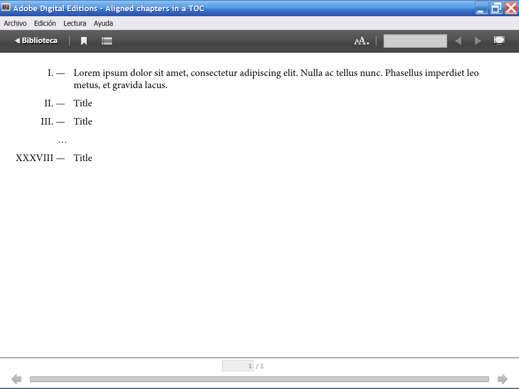 I have an HTML TOC that looks something like this: I. – Title II. – Title III. – Title IV. – Title … I'm trying to get the chapter numbers aligned by the endash as well as having the chapter title left aligned, if it wraps, after the endash. I have the chapter numbers in a span: Code: