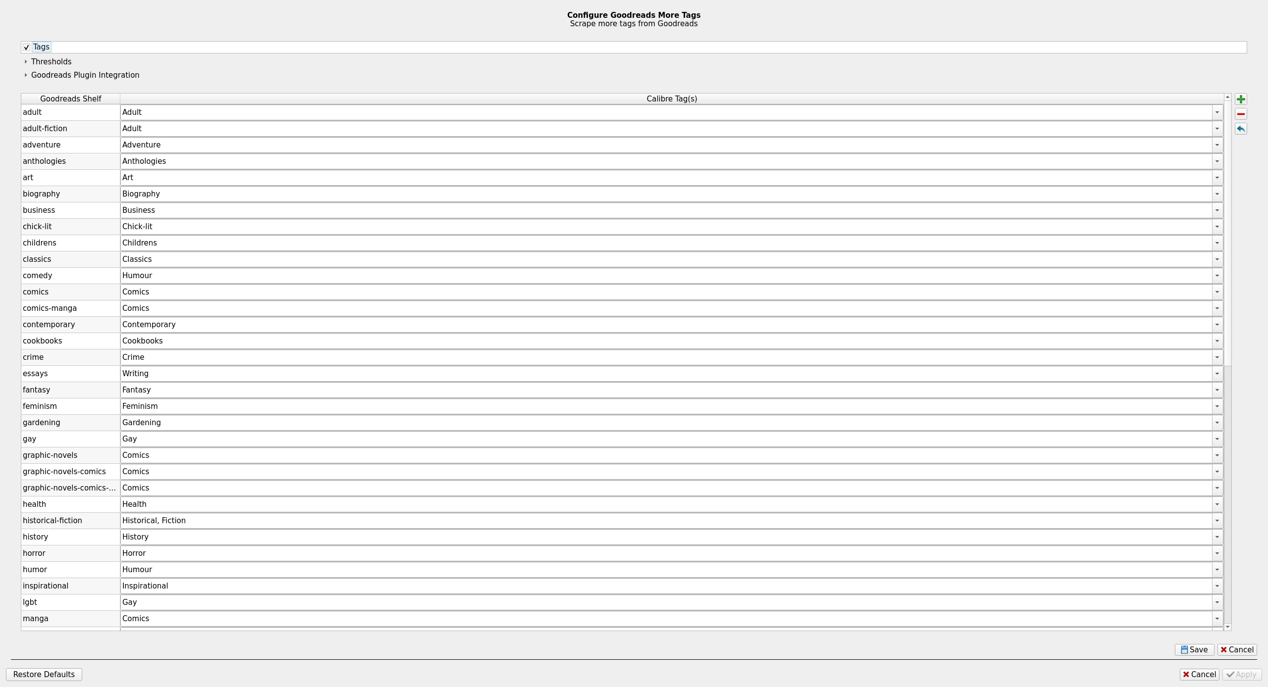 • If used without the base Goodreads plugin, it will only get tags for books that have a Goodreads identifier.