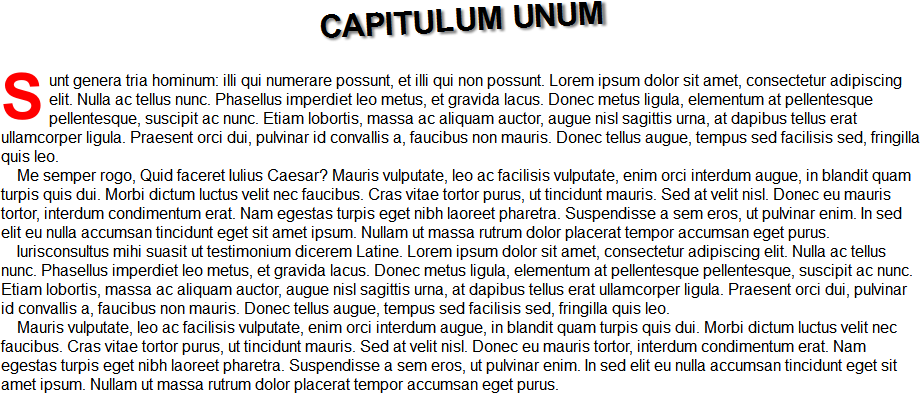 With CSS3 (text-transform + text-shadow + transform): Without text-transform: Without text-shadow: Without transform: Without any: Or even something as simple as: Code: