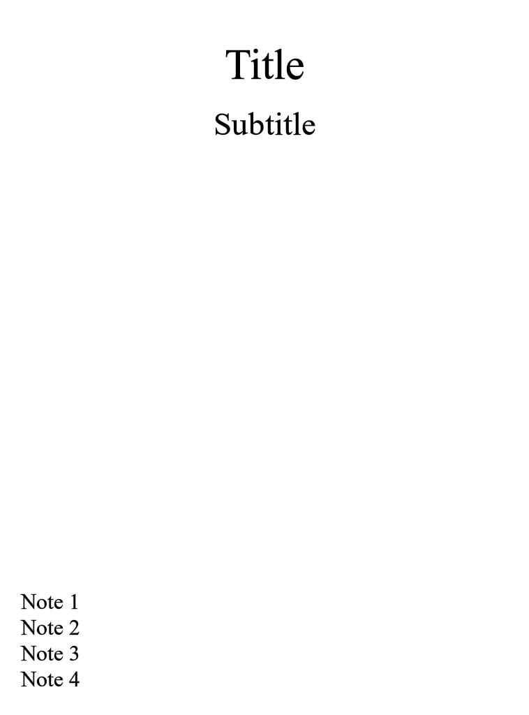 also <div style="position: fixed; bottom: 0;"> or <div style="position: absolute; bottom: 0px; width: 100%"> not work! I've solved with <div style="margin-top: 300px"> but only after various attempts! i have a page with: TITLE SUBTITLE note 1 note 2 note 3 note 4 and repeat my question (please write a valid example code): how to have 4 lines note at the end of my page?? (excluded margin-top rule) |