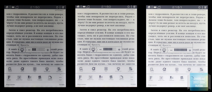 On some images the light seems a lot stronger at the bottom. I don't plan to read on max light, but still. I also plan to read manga from time to time, but I thought to myself - my monitor has 100 ppi. I'm going to hold that reader closer than the monitor, and it still has some more ppi. So it won't be that bad I guess. More is better of course. I wish I could see at least one of the readers so I could decide... :/ |