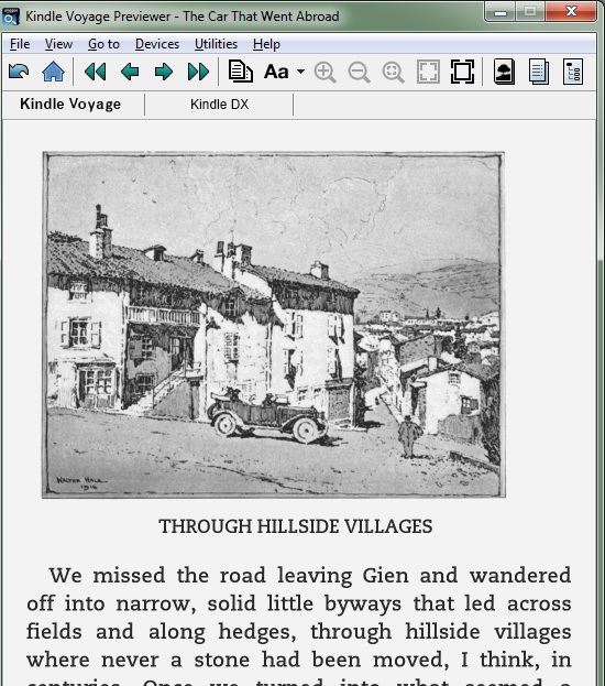 @Hitch --- another weirdness for the Previewer. If I select the Voyage and then view the images, they are indeed left-aligned. But if I select the Kindle DX FIRST (which displays the image centered), and jump directly to the Voyage while that image is still displayed, the Voyage shows it centered as well, also all the other images in the book then display centered. So I am almost certain this is a bug in the Previewer. However, I would be most grateful if you would confirm if the css and markup for images must use pixels rather than percentages. gG Last edited by GrannyGrump; 07-11-2016 at 02:18 AM. |