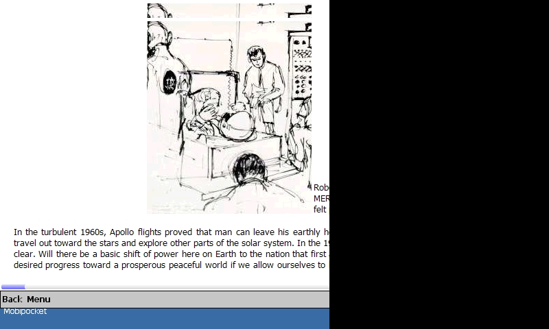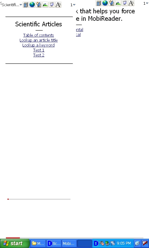 Microsoft Reader does work, but has some flaws. You miss the title bar, so you can't close the reader down... (as MS Reader doesn't have an "exit" in a menu somewhere...) |