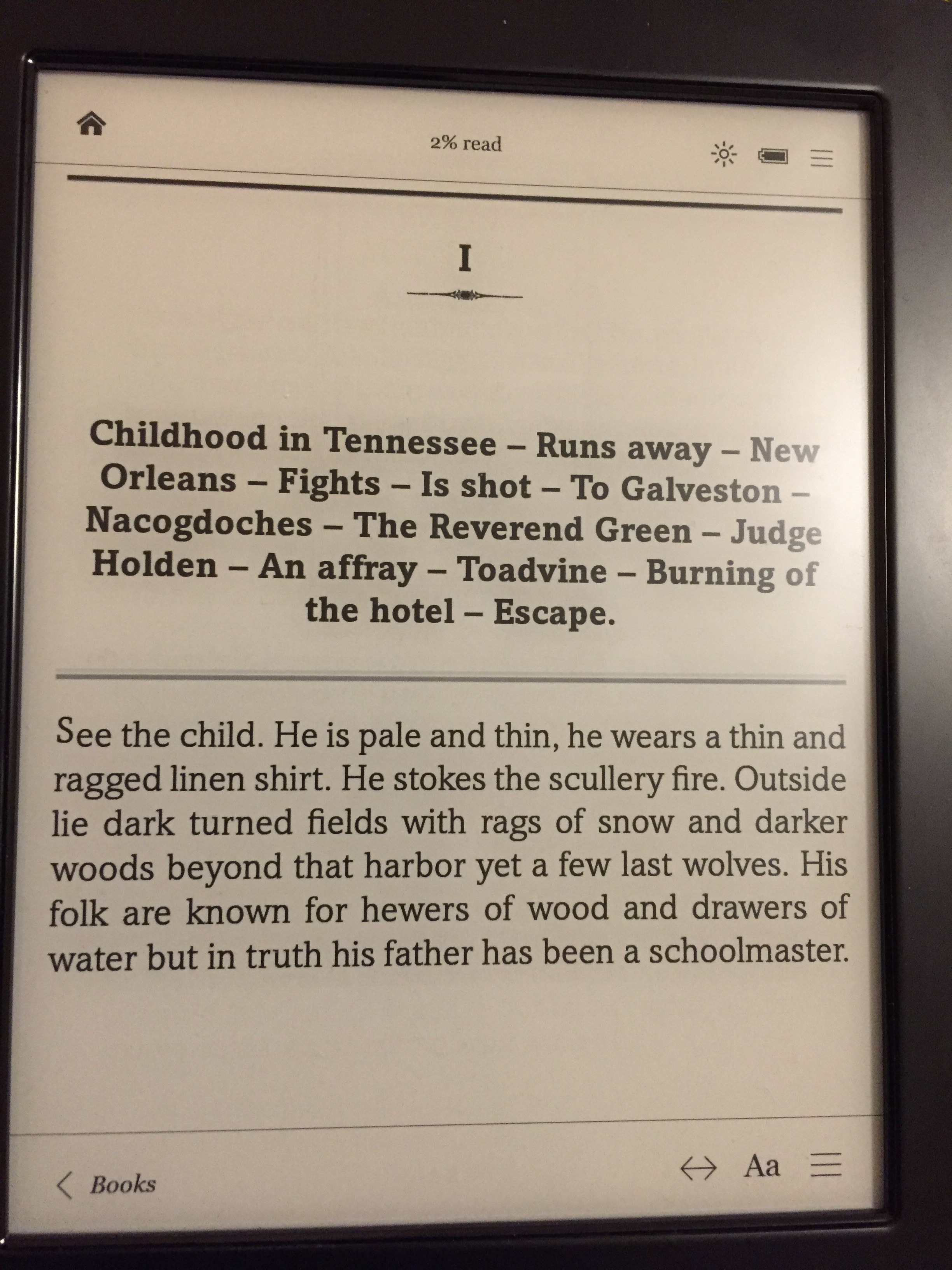 The naming issue: that's my fault entirely, and has nothing to do with the Kobo. It's to do with Calibre metadata. I resolved the issue by renaming my Calibre folders. As for the kepub.epub and epubs not showing dropcase letters properly fiasco: the issue was the conversion options I was selecting. Now I know not to remove spacing or embed fonts. I now know that the whole kepub.epub thing is only done in order to make nickel treat epub files as kepubs (whether they're the same format in the end, I don't know). I like seeing the amount of page numbers remaining in a chapter, rather than the entire page count, so I like renaming the extensions to .kepub.epub. Also, using .kepub.epub with the book I posted in the OP (Blood Meridian) fixes the font problem. See my attached images. epub.jpg shows the .epub version of the ebook, and kepub.jpg shows the .kepub.epub. I have to keep the file as a .kepub.epub to keep the dropcase formatting. koreader.jpg shows how the .kepub.epub doesn't render in koreader. The .epub displays with question marks, just like the .kepub.epub. If there is a way to convert the original epub so the dropcase letters render on the Kobo and koreader, please let me know. Anyway, the steps I took to convert the epub are pretty convoluted and I kind of forgot them (whoops). Involved a few conversions and the Modify ePub plugin. I didn't check the remove spacing or embed fonts boxes. Quote: