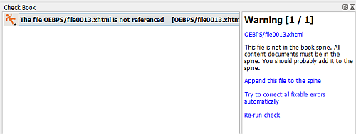 I was paging down one of my files (if it matters, it was: OEBPS/file0018.xhtml) to see if I could spot any glaring errors. I routinely do this to each file in all books, so I had already done files 1 to 17. What happens once in a while is that the file vanishes (so files jump from 16 to 18) and 17 is now found under Miscellaneous. To correct, I merely need to run Check Book, click the option to 'append to spine' and then put it back in the correct order. No big deal. I forgot to check this time, but I'm fairly sure the file remains as either xhtml or html, but I can't swear to it. This happens when I'm still in the file (because to move to the next file, I click the one under the highlight and of course the highlight is gone with the file). I'd just like to figure out what I'm doing to cause this to happen! It might only happen once in 6 months, or it might happen twice in one week. But I've never been able to figure out WHY. Any ideas? |