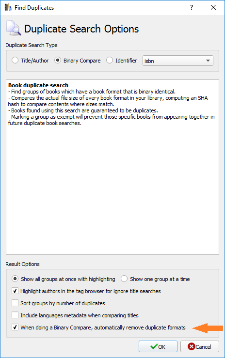 Yup that is correct. I don't use virtual libraries (maybe not yet). Thanks for reminding me about making big changes- i forgot to mention: earlier in the day I used duplicate finder plugin to search for binary identical files. I enabled the option to automatically remove binary duplicates (refer to screenshot1). Thereafter, I am left with lots of book records with no formats. I used "formats:false" to search for these records and deleted all of them. They are not in recycle bin (ie. deleted permanently) @kovidgoyal Thanks for your reply. I posted my metadata.db here: https://app.box.com/s/wz031kzyp4wohkx3gonc00shautbblqi because of the size limitation. Please take note of what I mentioned above (using duplicate finder plugin). I figured you are probably very busy being the founder of calibre, so I created a copy of metadata.db and browsed it with DBbrowser to try and figure things out and maybe contribute to solving my own problem. I noticed 2 oddities: 1. The table "books" contain 88765 entries, while the table "data" contains 92715 entries. (screenshot2) At first I believe the number next to the version number is the actual number of books, and the number in the pending metadata backup window is erroneous. Now I don't know which to believe.. 2. There is a table named "books_plugin_data". (screenshot3) Seems to be remnants left by plugin duplicate finder? Are they supposed to be there? Can my metadata file be repaired? What advice do you have? Btw @theducks and @kovidgoyal: thank you for taking the time to help me. The support in this forum easily surpasses paid programs, but then again I don't know of any paid program that can rival Calibre. |