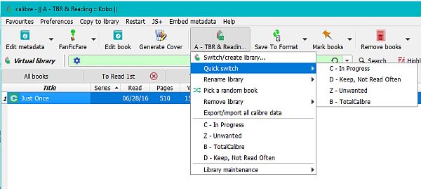 Is this because my B Library is in a different location? I don't think that should matter, but it's the only thing I can think of. I also have restarted Calibre since adding my new library and deleting the other libraries (E through J). |