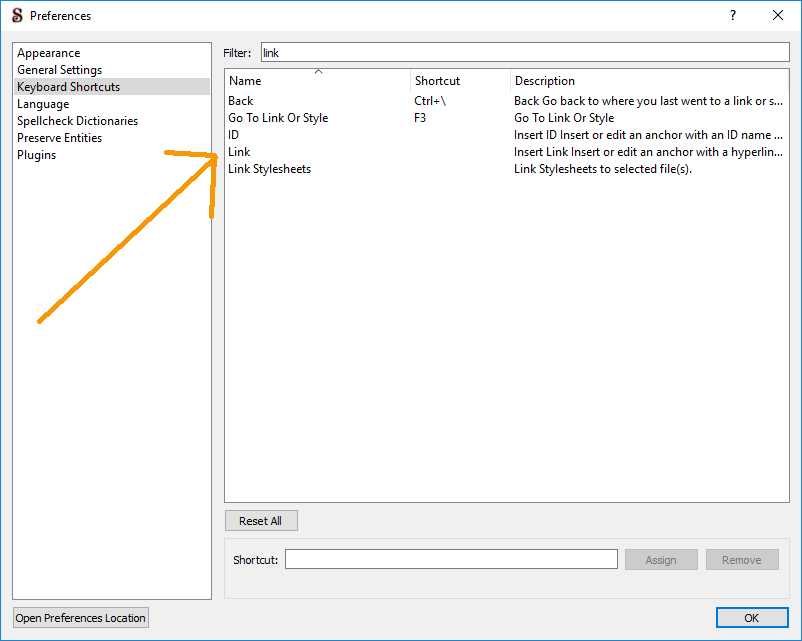 Did you know that there is an Insert Link button: Or you could go into Edit > Preferences > Keyboard Shortcut, and search for "Link": Or you could also create a Clip: Code: