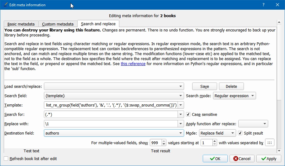 I have been changing the author to match the author sort, that is lastname, firstname. I now regret that. Is there anyway to globally set author to firstname lastname. I can do it individually, but there are thousands of books.