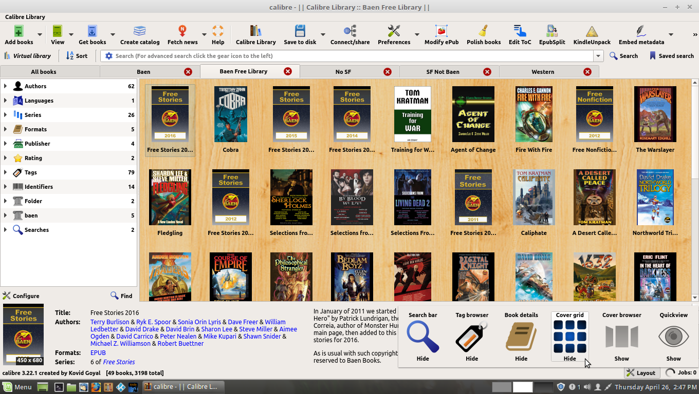 Opened Calibre today, and instead of the normal list of items with various fields (title, author, size, date, etc.) the interface has changed to a bunch of covers with truncated title and date (and maybe other items I cannot see.)