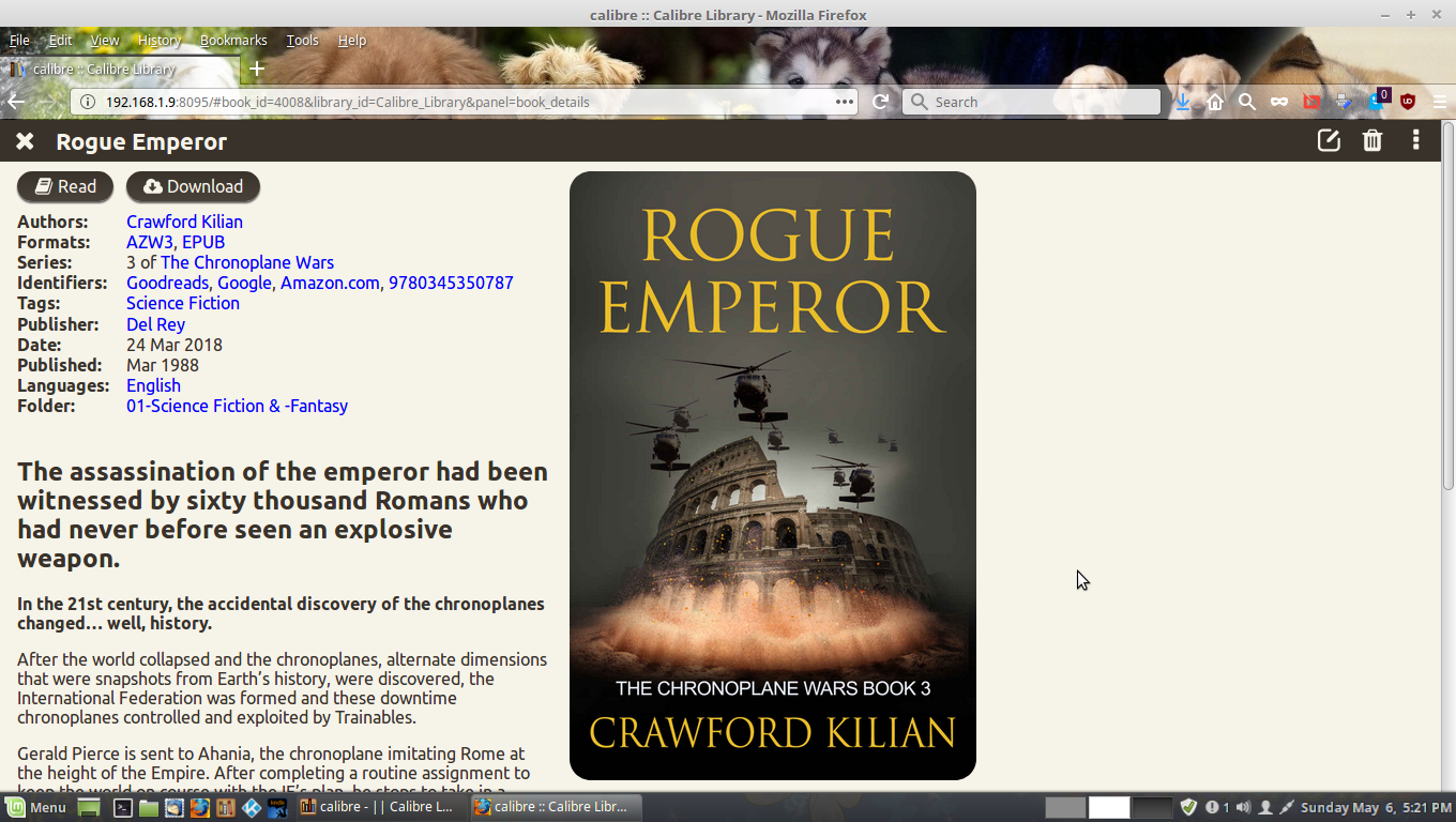 If the configuration is on the database, why I can see series in gui and mobile version but not in javascript version? the field name "serie" exists but its value is visualized blank, the strange thing is that I can search by series and it works (so the value exist in databes) , and the content server works fine with the fields, for example for books that are not in a series the field name "serie" is not visualized. I don't know where I go wrong. ![]() Anyway thank you very much for your help ![]() ciao Khyox Last edited by khyox; 05-06-2018 at 03:52 PM. |