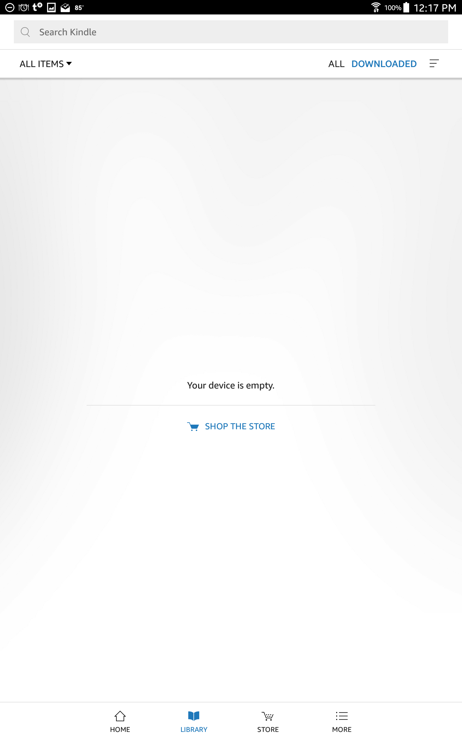 My Kindle app has no books downloaded right now but the "All" reading shows, of course, all the books in the Kindle Cloud. I don't see how it can show none unless you have absolutely no books in your Kindle Account. If it were me, I would definitely visit my favorite cell phone/tablet store and let someone who knows more than I do figure it out. Last edited by patrickt; 08-02-2018 at 01:17 PM. |