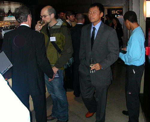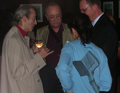 The presentation was given by Steve Haber, who is the head of the effort that produces the reader. The audience included Sony and E Ink representatives, members of the press, and representatives from publishers including Random House, Ballantine Books, Hachette Filipacchi, and HarperCollins. The actual presentation took about 20 minutes. The rest of the event was socializing with a Sony catered open bar. Technical details about the reader beyond what were presented in the Sony press release Nate already wrote about were scarce, but those will doubtless be forthcoming.