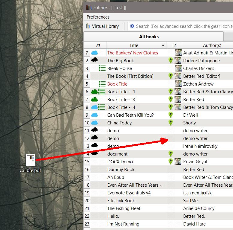 Also try downloading this file https://manual.calibre-ebook.com/calibre.pdf to your desktop, then drag and drop it into the calibre book list, viz: BR |