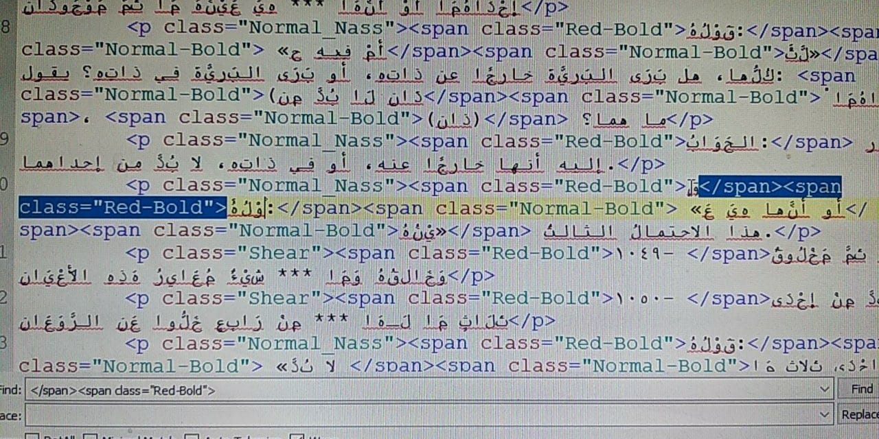 Greetings, I want to delete this code (using replace all) in sigil </span><span class="Normal-Bold"> only in one condition if it becomes between this code, <span class="Red-Bold"> example text</span> screenshot in the attachment for more details.