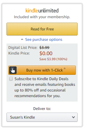 For a couple of weeks (???), whenever I try to buy a book that is free at Kindle US, and is also in the KU program (for which I have a membership), the primary button that shows up first on the webpage for the book has only a "Read for Free" button, that would only borrow it from KU, and not actually buy it. And there is no immediately visible "Buy" button. See the first thumbnail below. To actually buy the book, you have to click on the little "see purchase options" link, which then reveals the "Buy now with 1-click" button that actually lets you purchase the book. See the second thumbnail below. At first, I thought this was some glitch, but since it hasn't gone away for quite a while, I am now thinking it is on purpose. Although it's hard for me to imagine the purpose, since free is free, unless maybe they want you to borrow the book, and then like it enough to buy it, maybe after it's no longer free ??? But that seems a bit tortuous, even for Amazon ??? Anyway, just curious if anyone else has noticed this. I'd say it has happened to me 5 - 10 times over the last few weeks. |