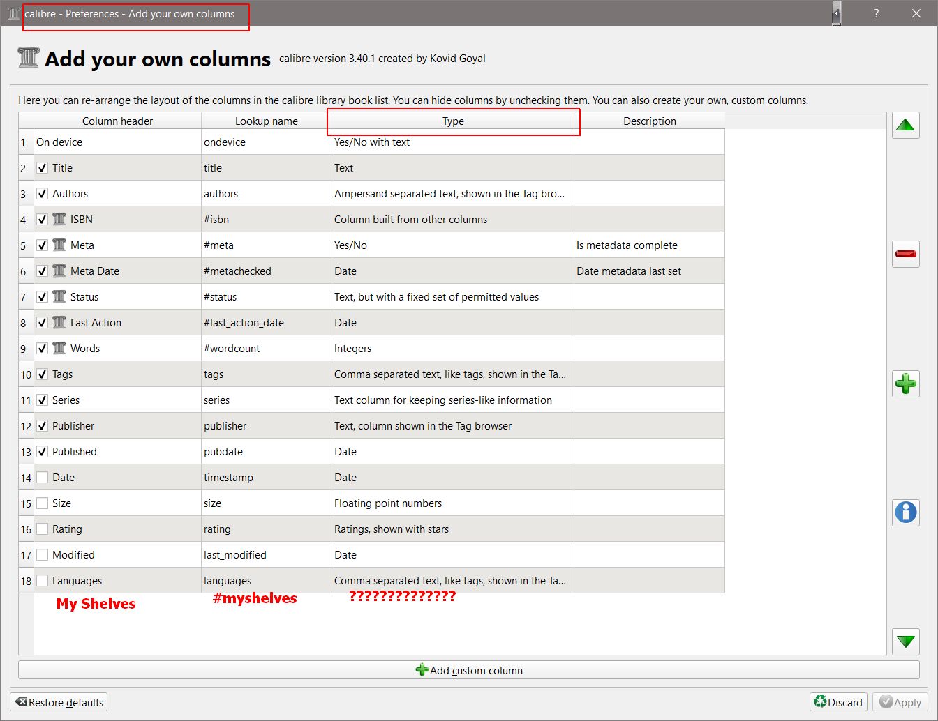 Is Myshelves a Custom Column ? Of fixed value text?
