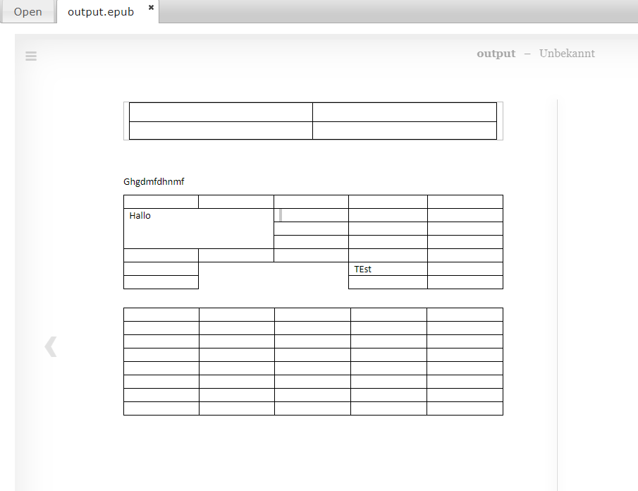 I have created tables in MS word and exported this file as an HTML file. When I open the HTML file in Sigil the following is displayed: Table not visible. But If I save it and open the epub-file in online reader like: https://www.ofoct.com/viewer/epub-reader-online.html then the following is displayed: Table is visible. My question: Is it possible to display the Table on Sigil? Or Is there any workarounds to do that? Thank you |
