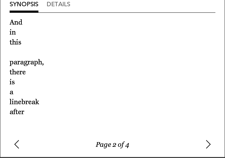 Joined the forum because I have a very specific question I cannot find the answer to: some of the summaries on my Kobo Aura show line breaks and others look perfectly fine. Sometimes there's also an abrupt font change. I use the Calibre 'Comments' field to add the summaries. In Calibre everything looks fine. When I check the metadata html, the summary is coded in seperate lines, rather than one line, which is what's causing the linebreaks: When there's a font change, it's also reflected in the html. I've had this happen with summaries I got via 'download metadata', that I c&p into the box or that were already embedded in the file. The only thing that fixes it is editing the html or manually replacing the space where the line break is in the 'Comments' field. My question is, does anybody have any idea why this happens and how I can fix it in bulk or prevent it from happening in the future? I have 2000+ books in my library, checking and manually changing all of them would be a huge effort. Thanks! |