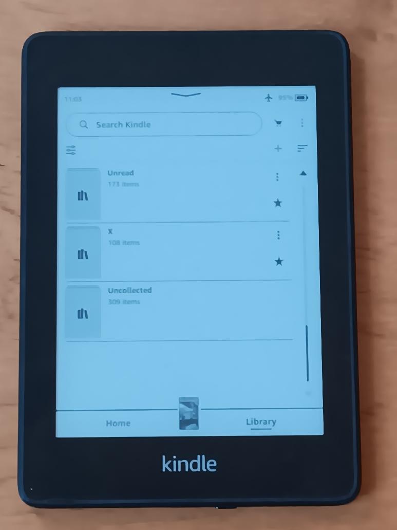 However, what I do have are a 10th generation Paperwhite (which is, I think, the model that immediately precedes yours) and a basic Kindle 11th generation (2024). Both are running firmware 5.18.1. When I have the display set to view collections, sorted by title ascending, I'm shown what appears to be a collection called Uncollected at the end of the list. All of my books not allocated to a real collection are held in that "collection". I've attached a photo of my Paperwhite to show what I mean. AFAIK, it's no longer possible to display uncollected books in a (long) list after the true collections. |